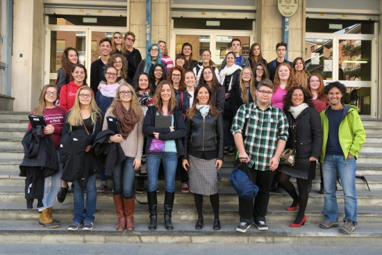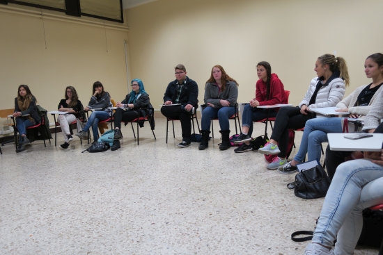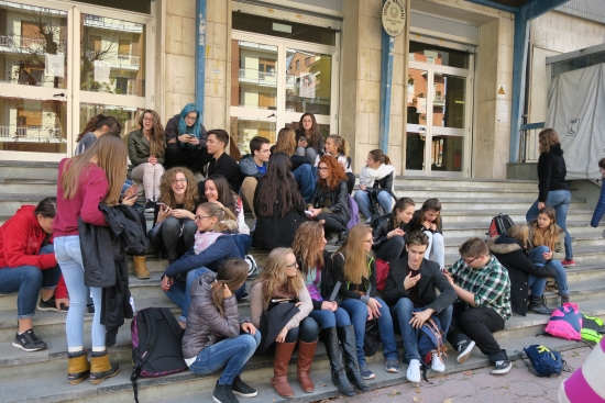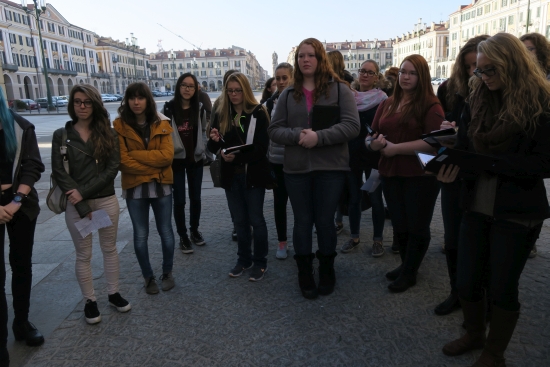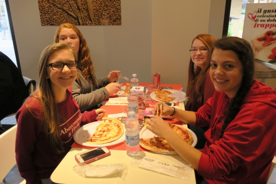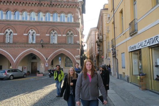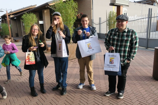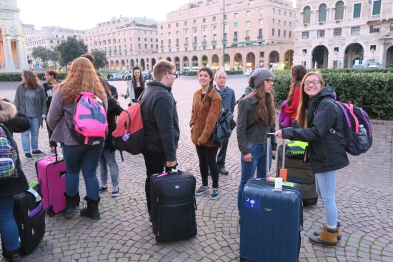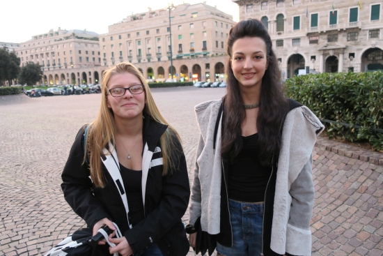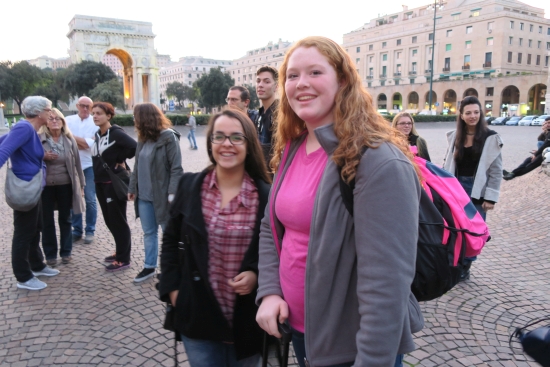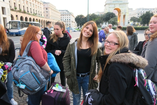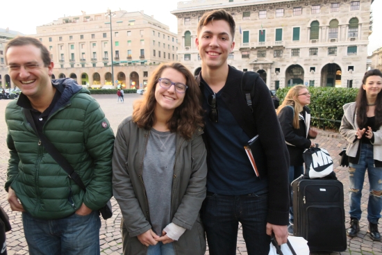 Today we met the students from Cuneo from Instituto de Amicis. We had short introductions, a guided tour of the town, and mingling/exchanging ideas time. Our journey continued to an outlet where we ate lunch before we ventured on to Genoa where our host parents met us in Piazza Vittoria. |